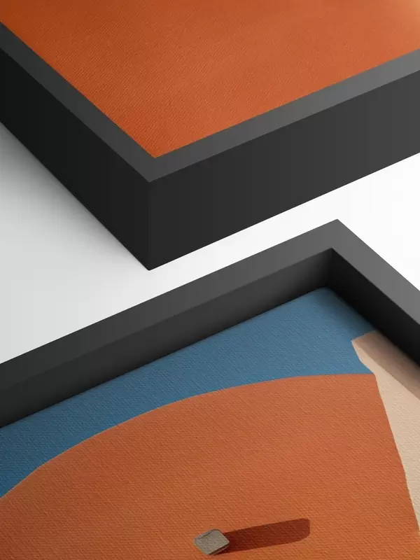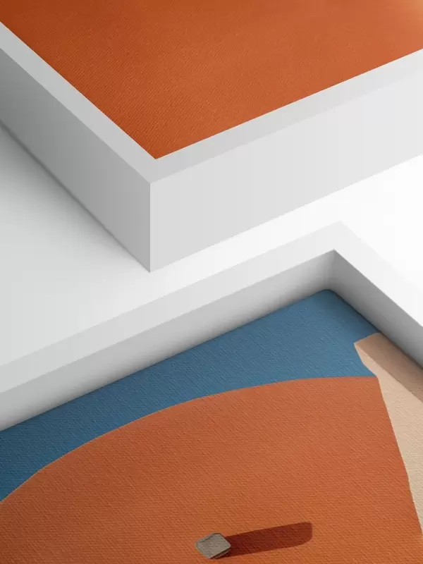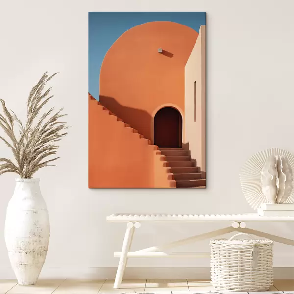 Wandbilder Minimalistische architektonische Gebäude mit Stufen, blau, orange Farbe Art. s40724