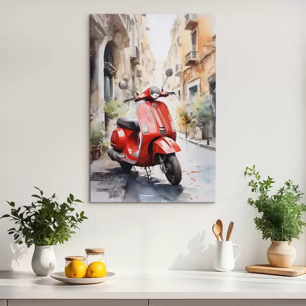 Wandbilder Rotes Motorrad auf der Straße von Rom Aquarell Art. s40728