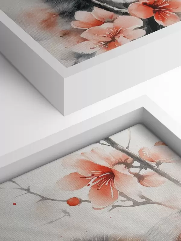 Wandbilder Niedliches Kätzchen auf einem Zweig mit Blumen s40734