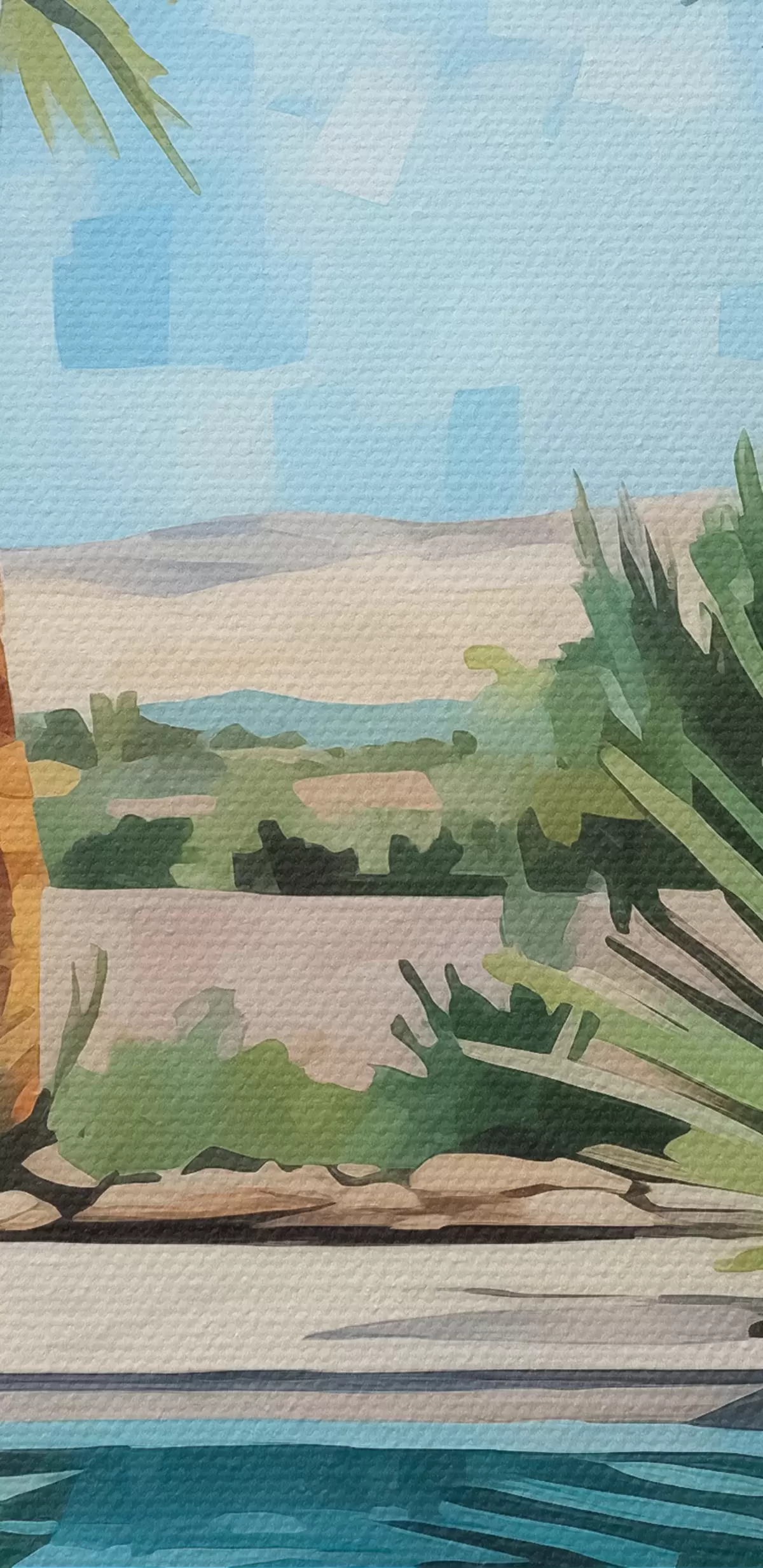 Wandbilder Palmen in der Nähe des Hotels mit einem Schwimmbad in der Nähe der Felsen, blau, grün, rot Farbe s40748