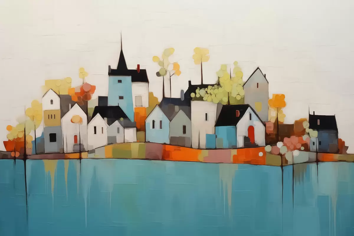 Wandbilder Abstrakte Stadt und Häuser, blau, gelb, rote Farbe Art. s40751