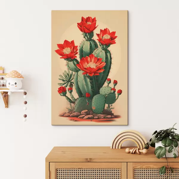 Wandbilder Blühender Kaktus mit roten Blüten Art. s40806
