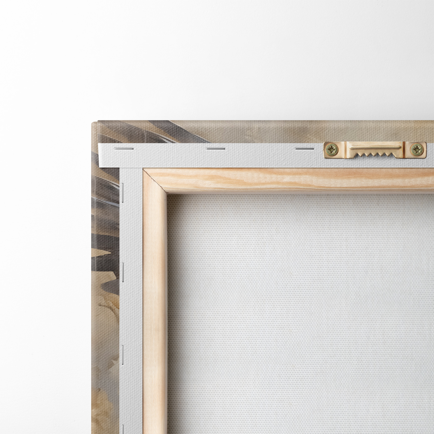 Um die Leinwand auf Keilrahmen zu spannen, ohne das Bild zu beschädigen, verwenden wir ein gespiegeltes Bild.