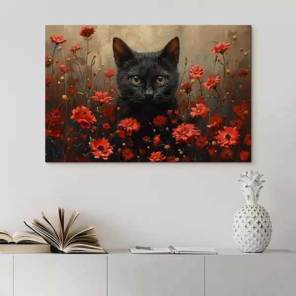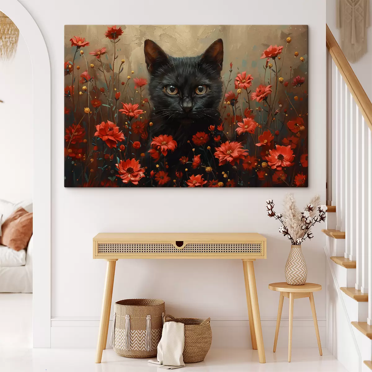 Wandbilder Katze, Blumen, schwarze Katze Art. s40839
