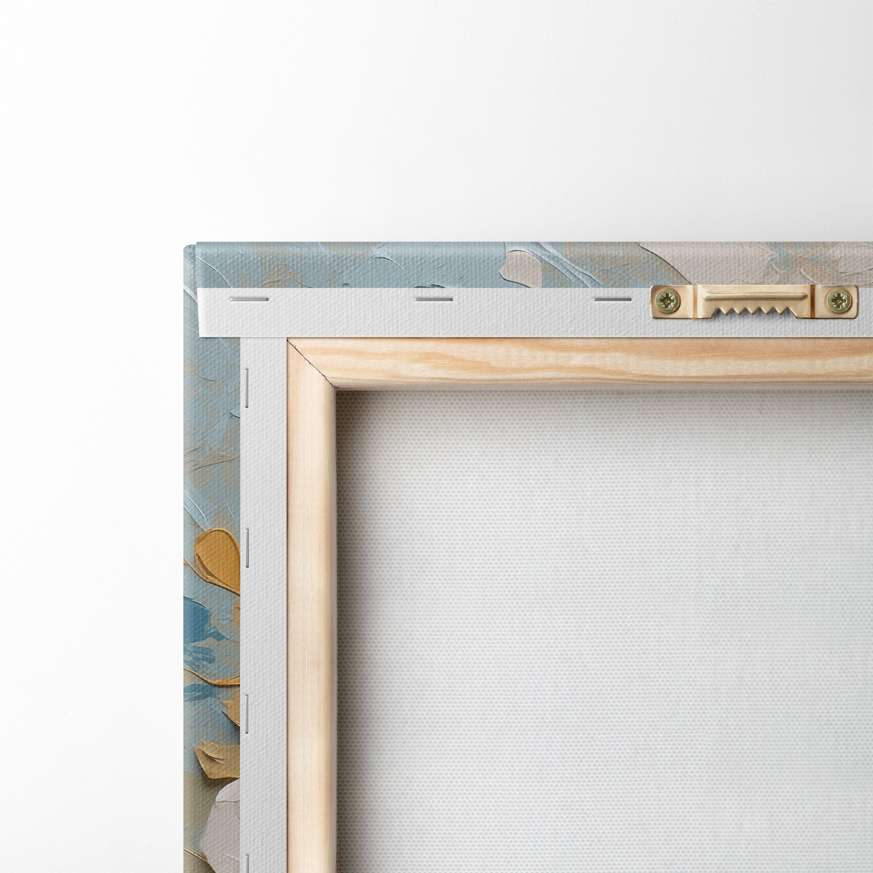 Um die Leinwand auf Keilrahmen zu spannen, ohne das Bild zu beschädigen, verwenden wir ein gespiegeltes Bild.