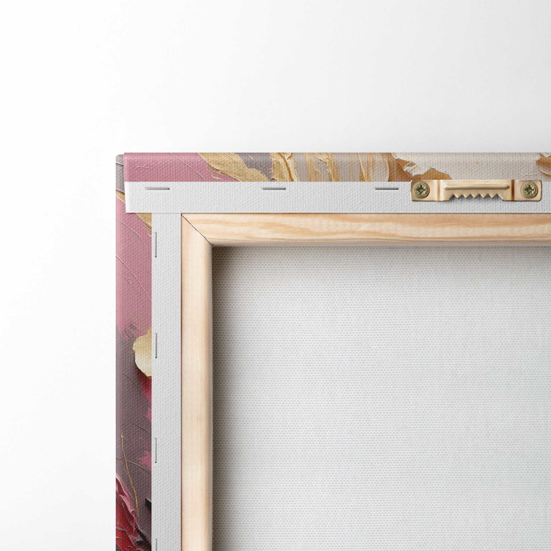 Um die Leinwand auf Keilrahmen zu spannen, ohne das Bild zu beschädigen, verwenden wir ein gespiegeltes Bild.