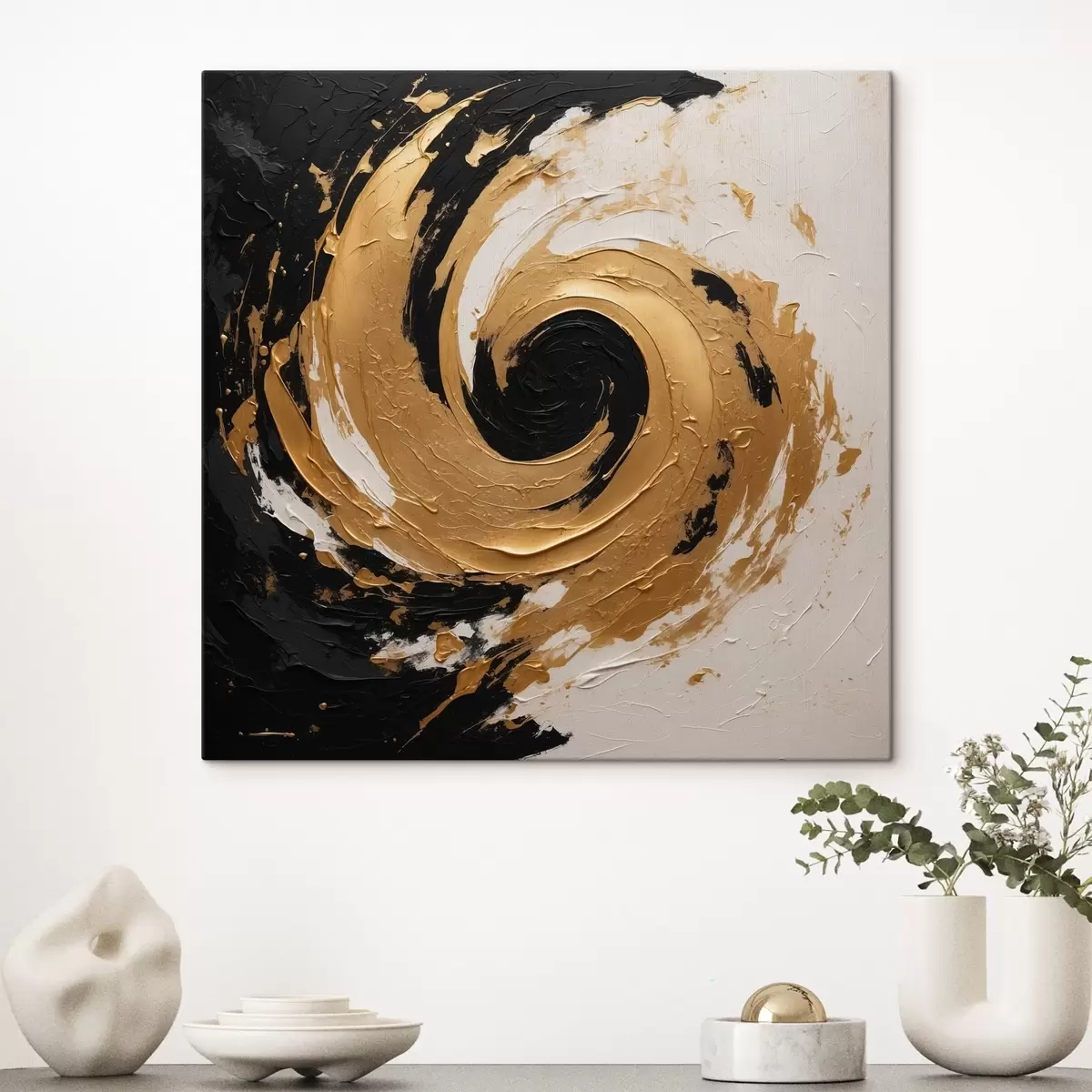 Wandbilder Abstraktes Ölgemälde mit schwarz Wirbel Art. s40864