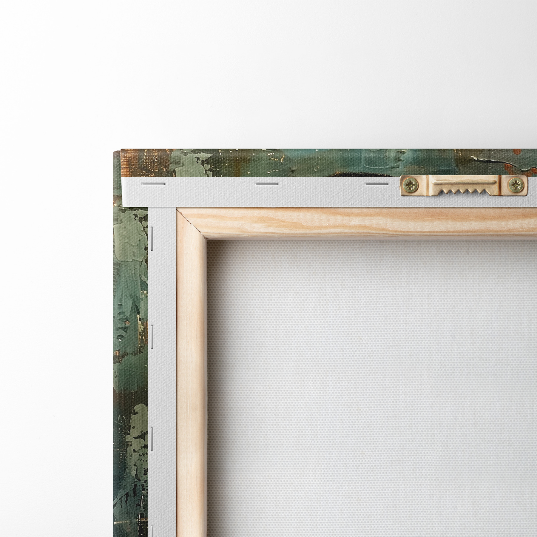 Um die Leinwand auf Keilrahmen zu spannen, ohne das Bild zu beschädigen, verwenden wir ein gespiegeltes Bild.