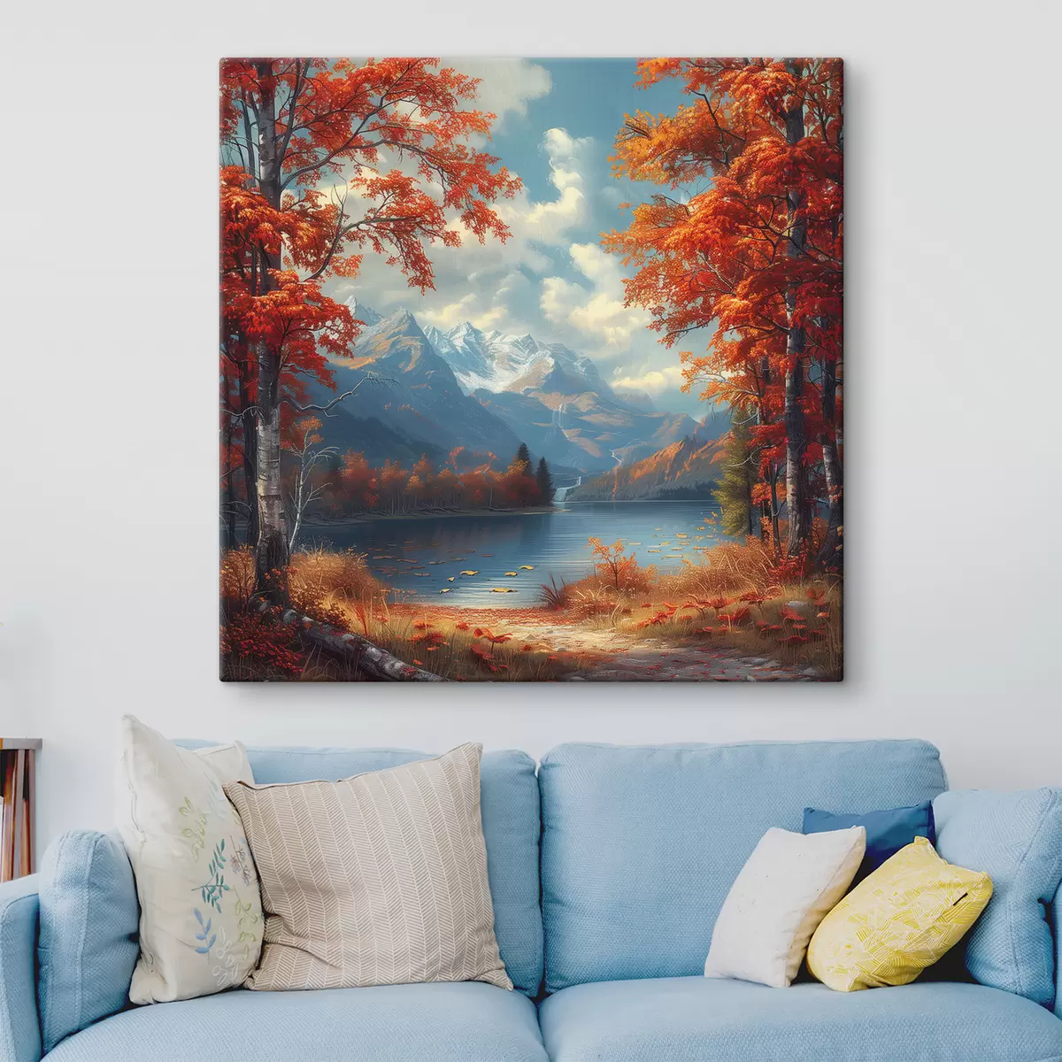 Wandbilder Herbstlandschaft vor der Kulisse der Berge in der Nähe eines Teiches Art. s40903