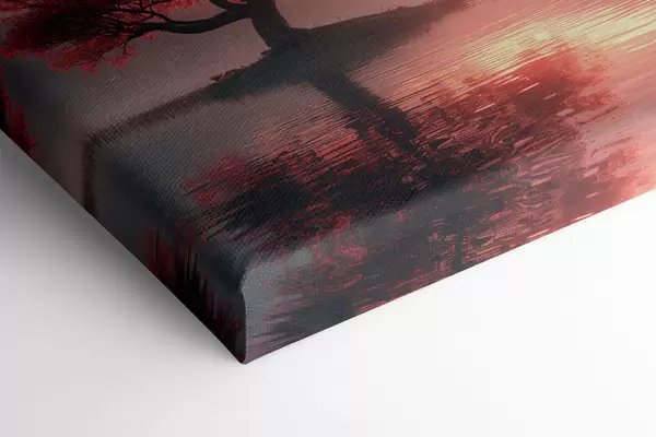 Wandbilder Baum am Teich bei Sonnenuntergang s40934