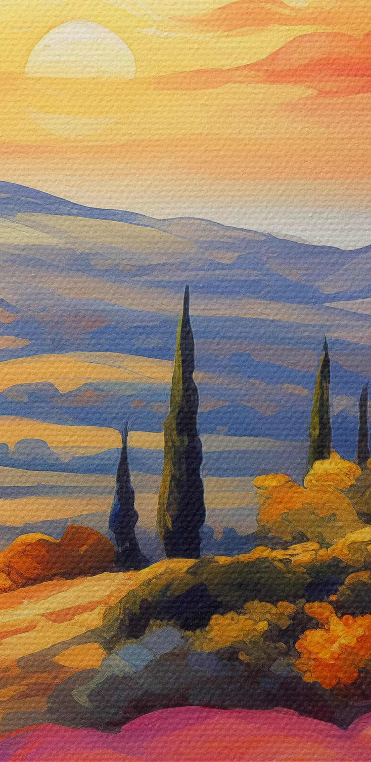Wandbilder Toskana Sonnenuntergang, Lavendelfelder, schöne Landschaften, Aquarell Art. s40942