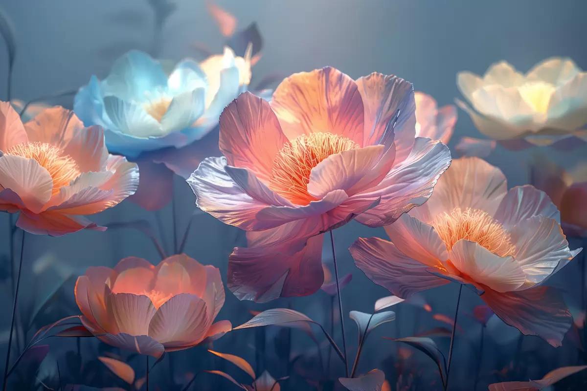 Wandbilder Zauberhafte Mohnblumen mit blauer Färbung s40958