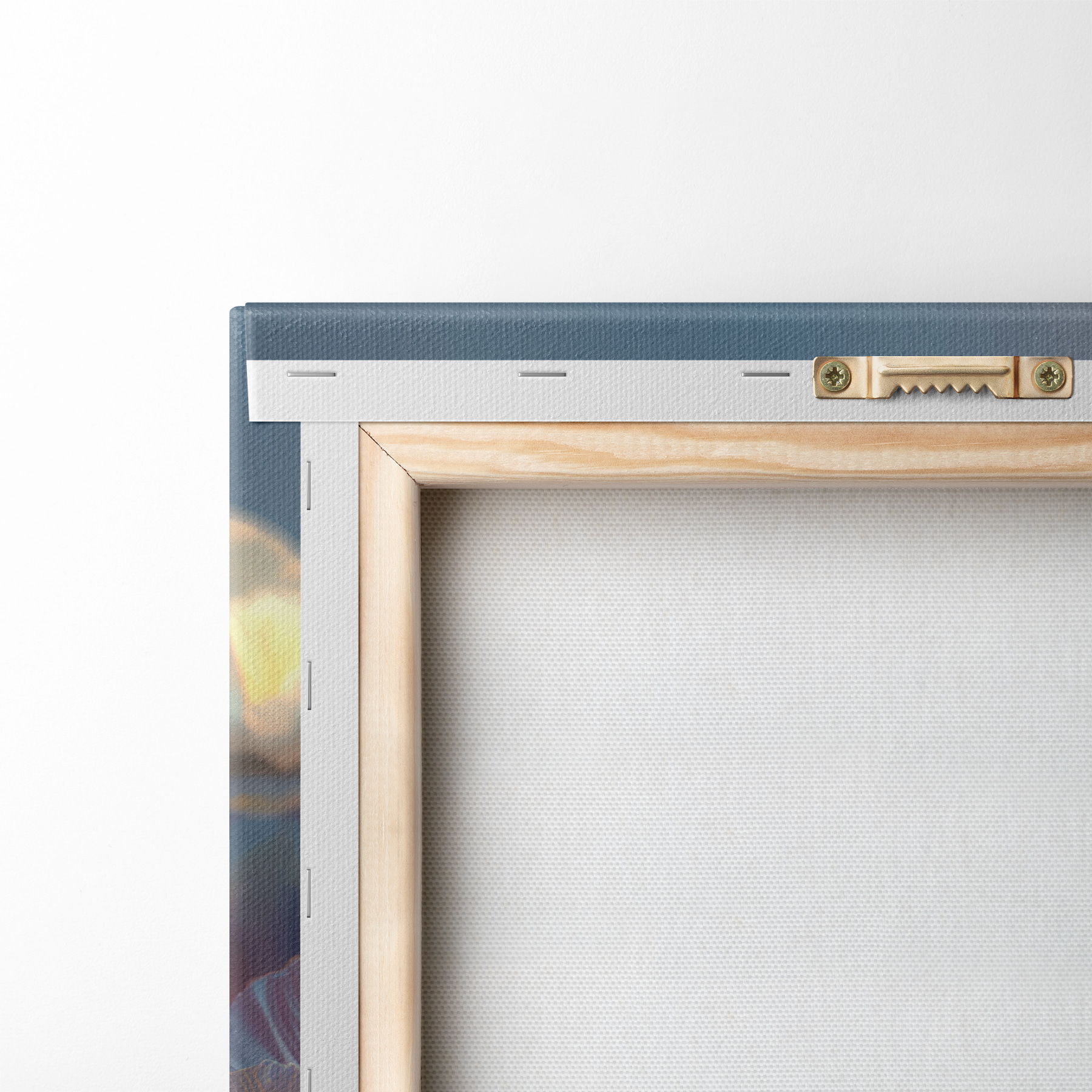 Um die Leinwand auf Keilrahmen zu spannen, ohne das Bild zu beschädigen, verwenden wir ein gespiegeltes Bild.
