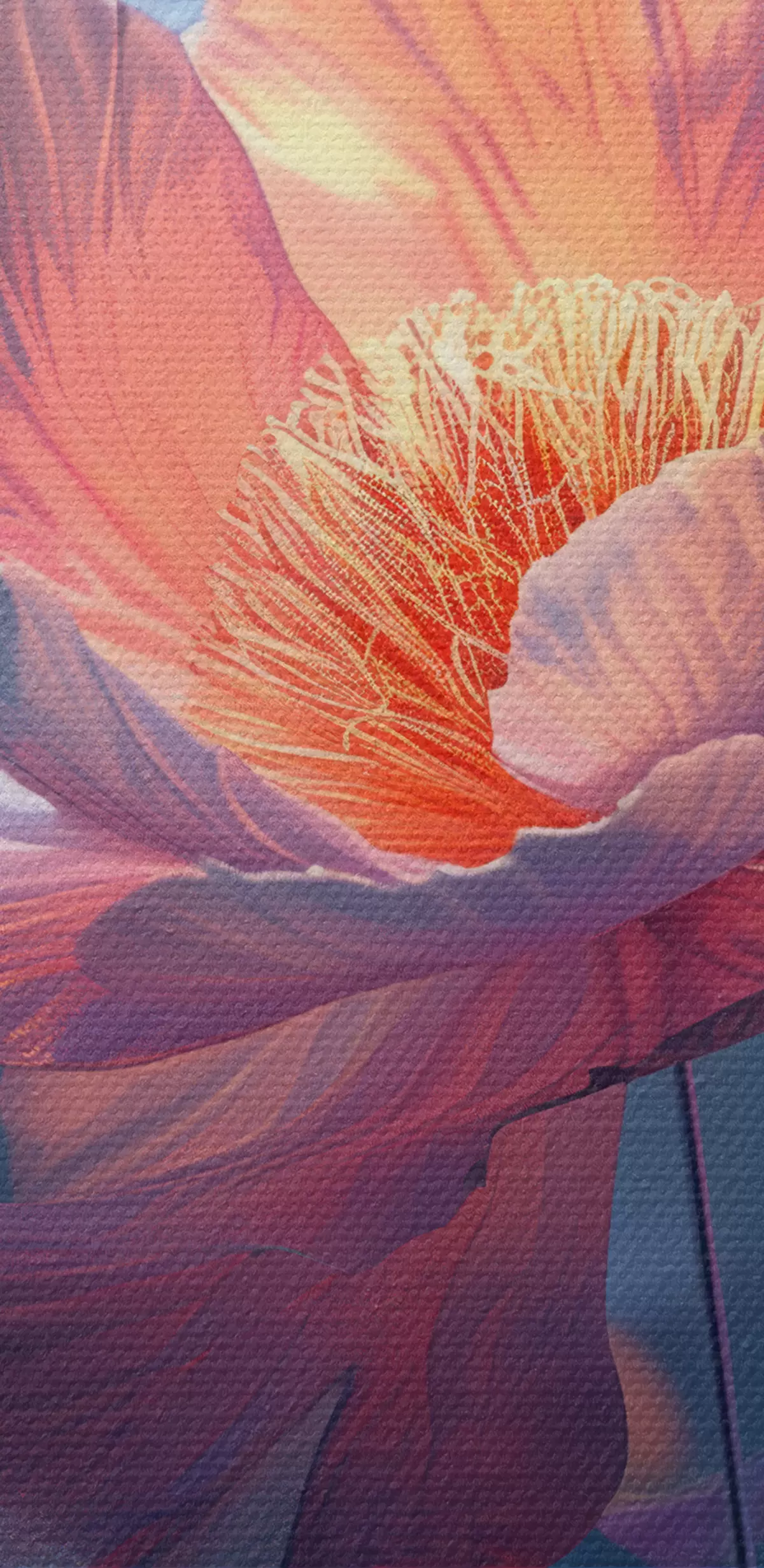 Das feine Fadengeflecht auf dieser Leinwand ähnelt der Oberfläche von professionellen Künstlerleinwänden.