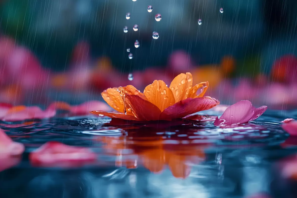 Wandbilder Eine Seerose mit Regentropfen s40977