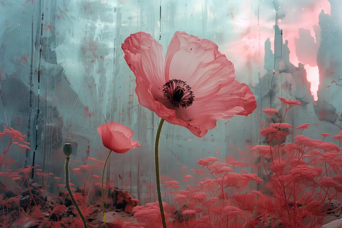Wandbilder Mohnblumen in einer futuristischen Natur s40988