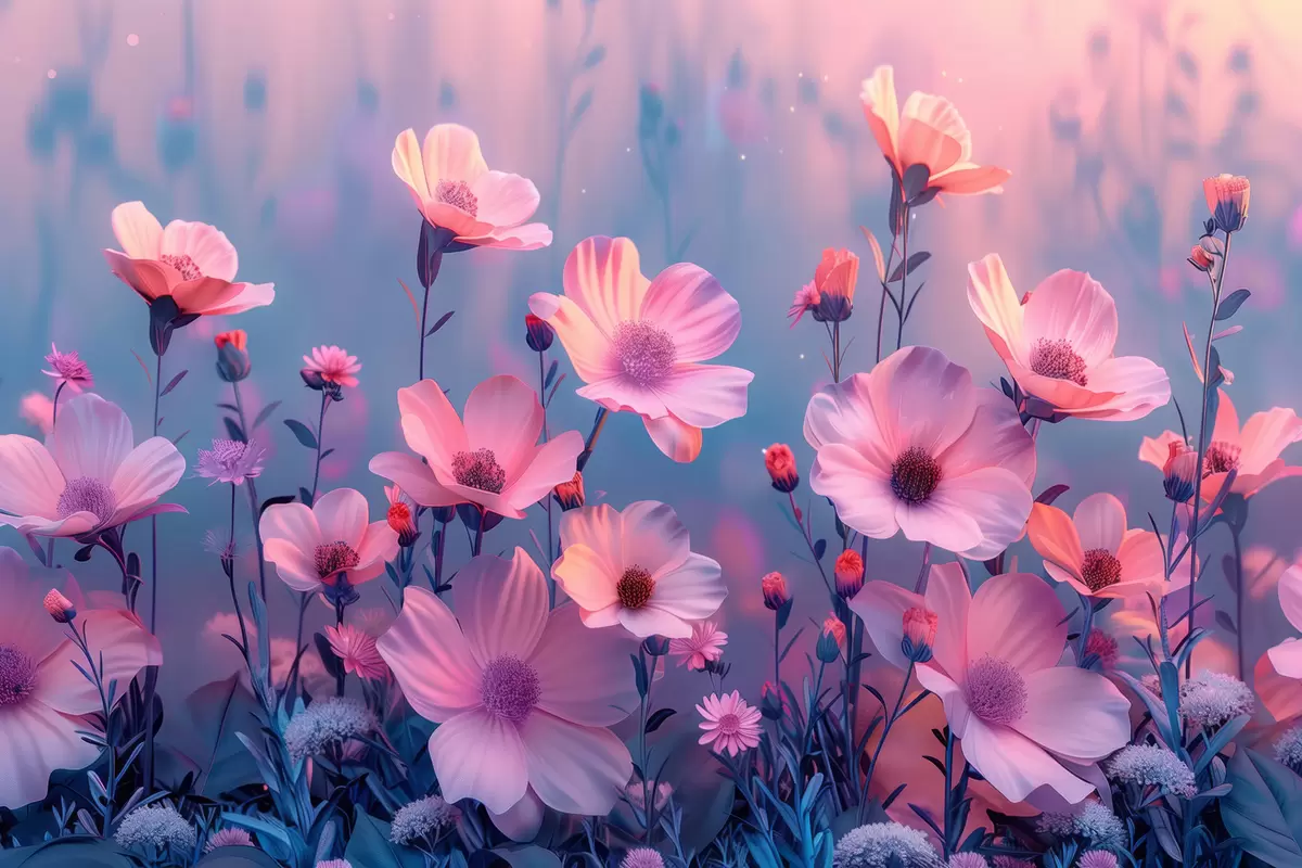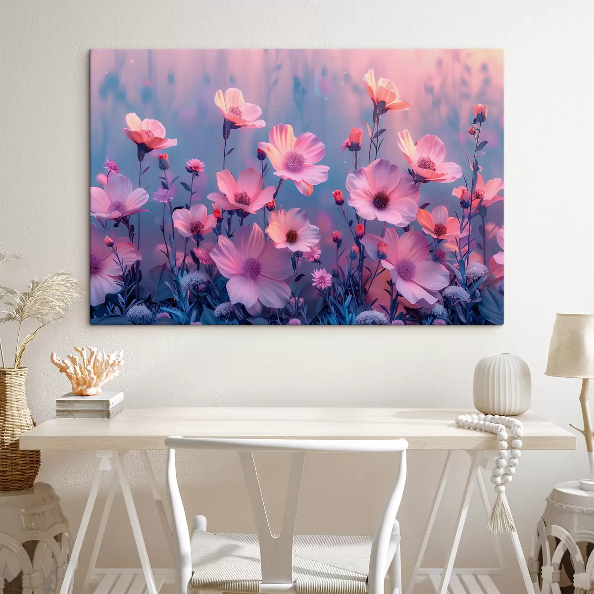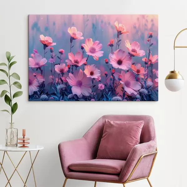 Wandbilder Märchenhafte Wildblumen in rosa und blauen Farbtönen Art. s40990