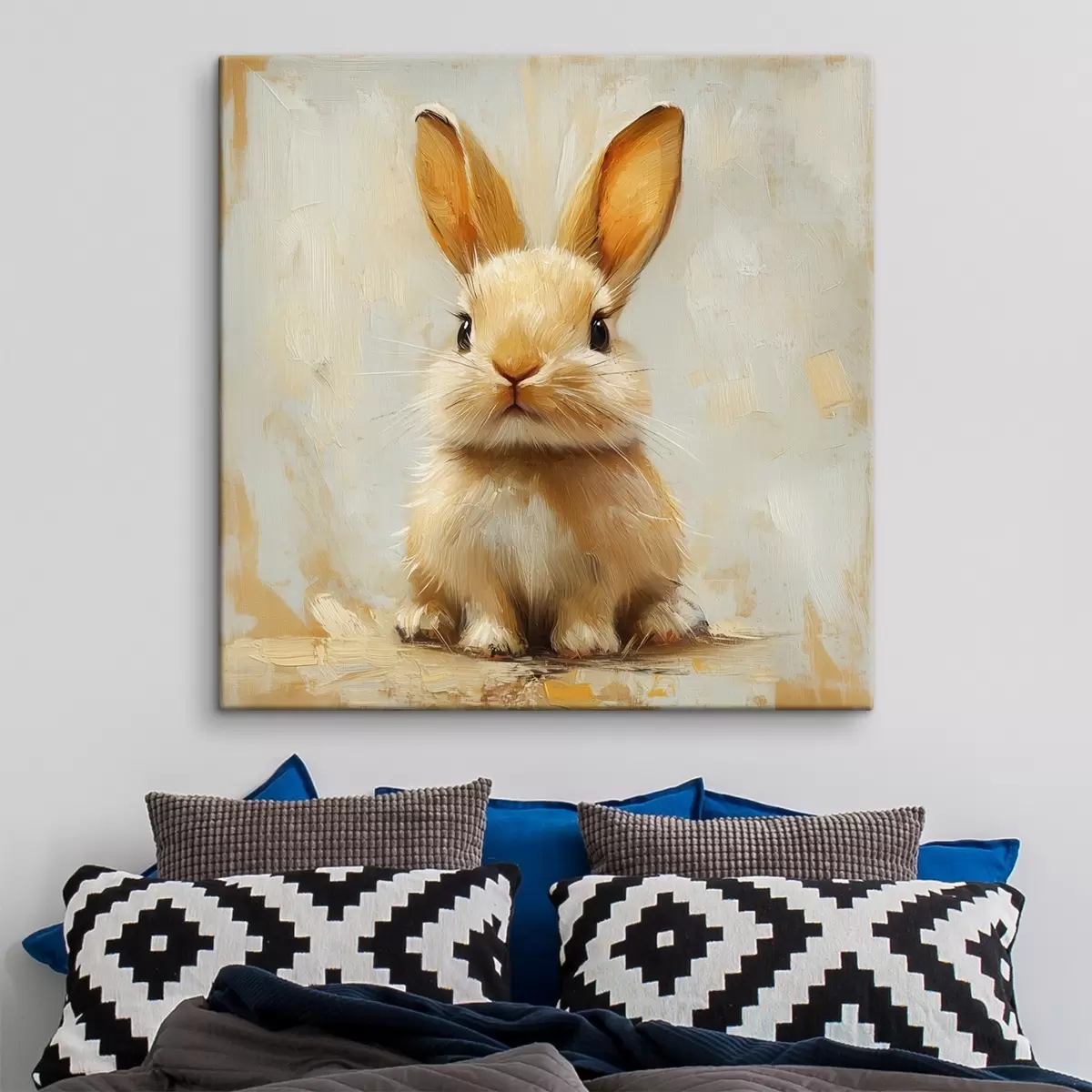 Wandbilder Beigefarbener Hase auf hellem Hintergrund mit kräftigen Pinselstrichen Art. s41000