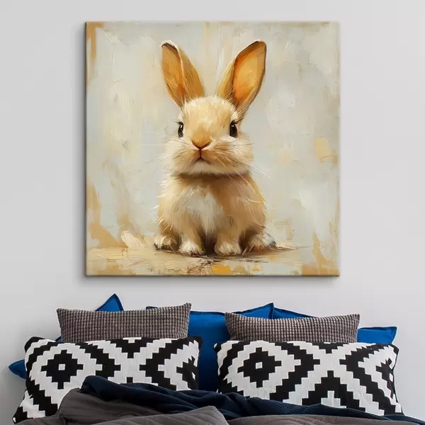 Wandbilder Beigefarbener Hase auf hellem Hintergrund mit kräftigen Pinselstrichen s41000