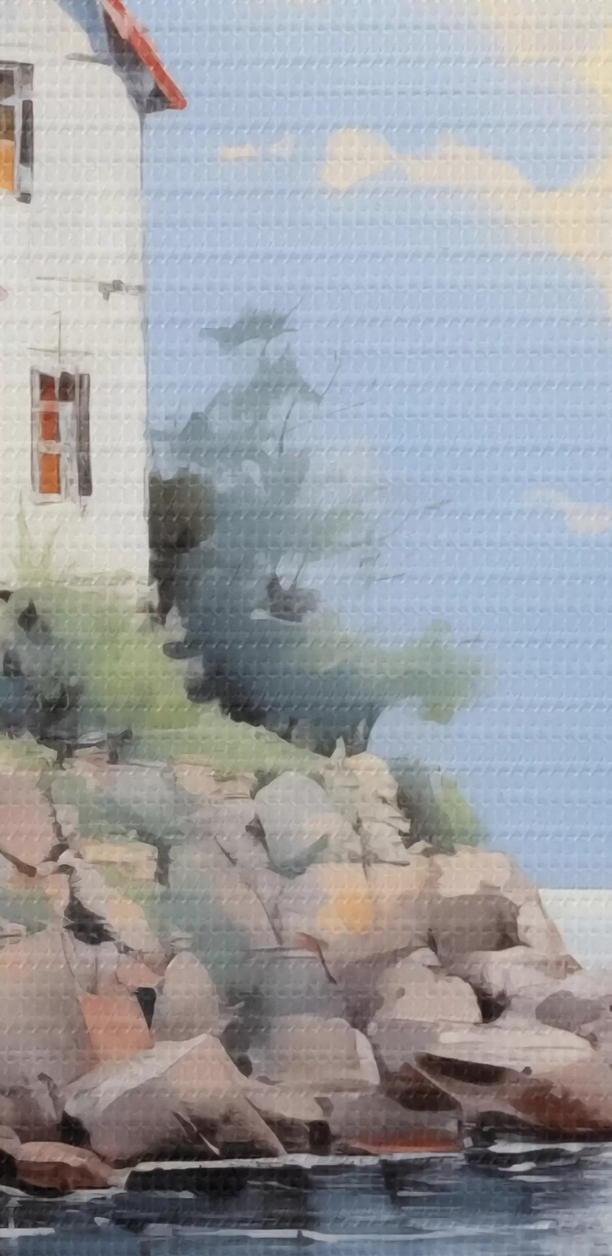 Das feine Fadengeflecht auf dieser Leinwand ähnelt der Oberfläche von professionellen Künstlerleinwänden.