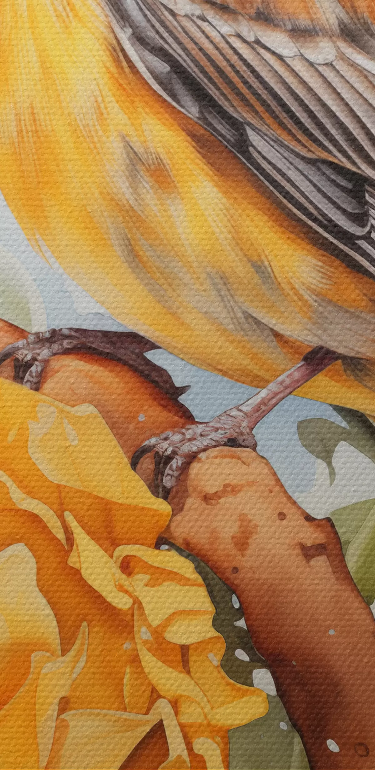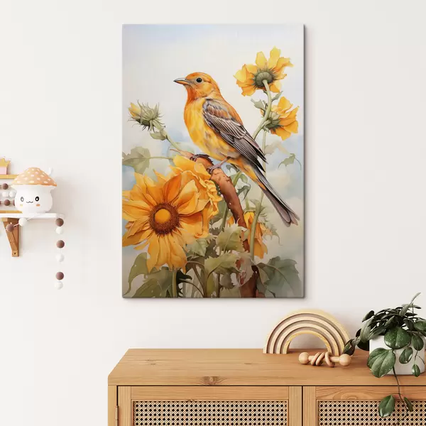 Wandbilder Gelber Vogel auf Sonnenblume sitzend Aquarell s41015