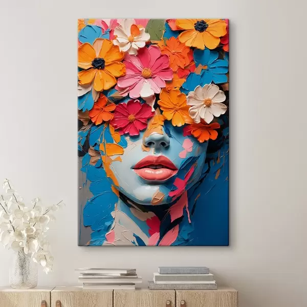 Wandbilder Gesicht eines Mädchens in Öl mit Blumen bedeckt Art. s41023