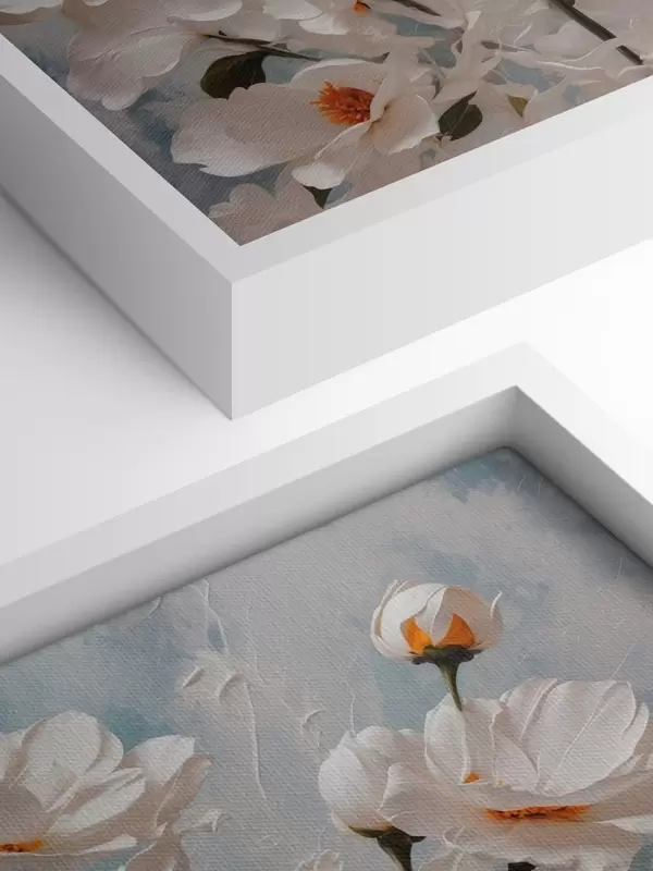 Wandbilder Weiße Blumen auf blau-weißem Öl-Hintergrund s41041