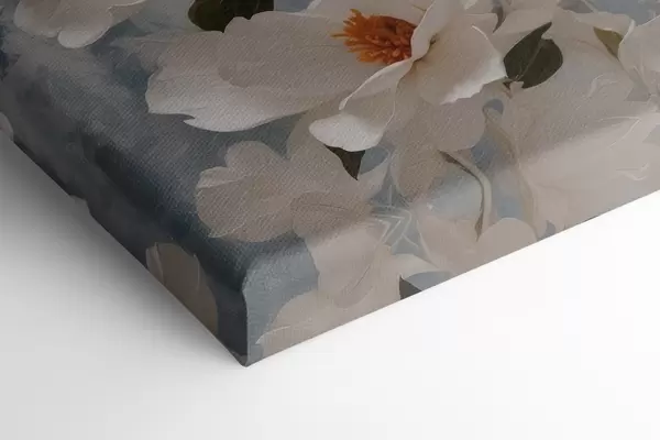 Wandbilder Weiße Blumen auf blau-weißem Öl-Hintergrund s41041