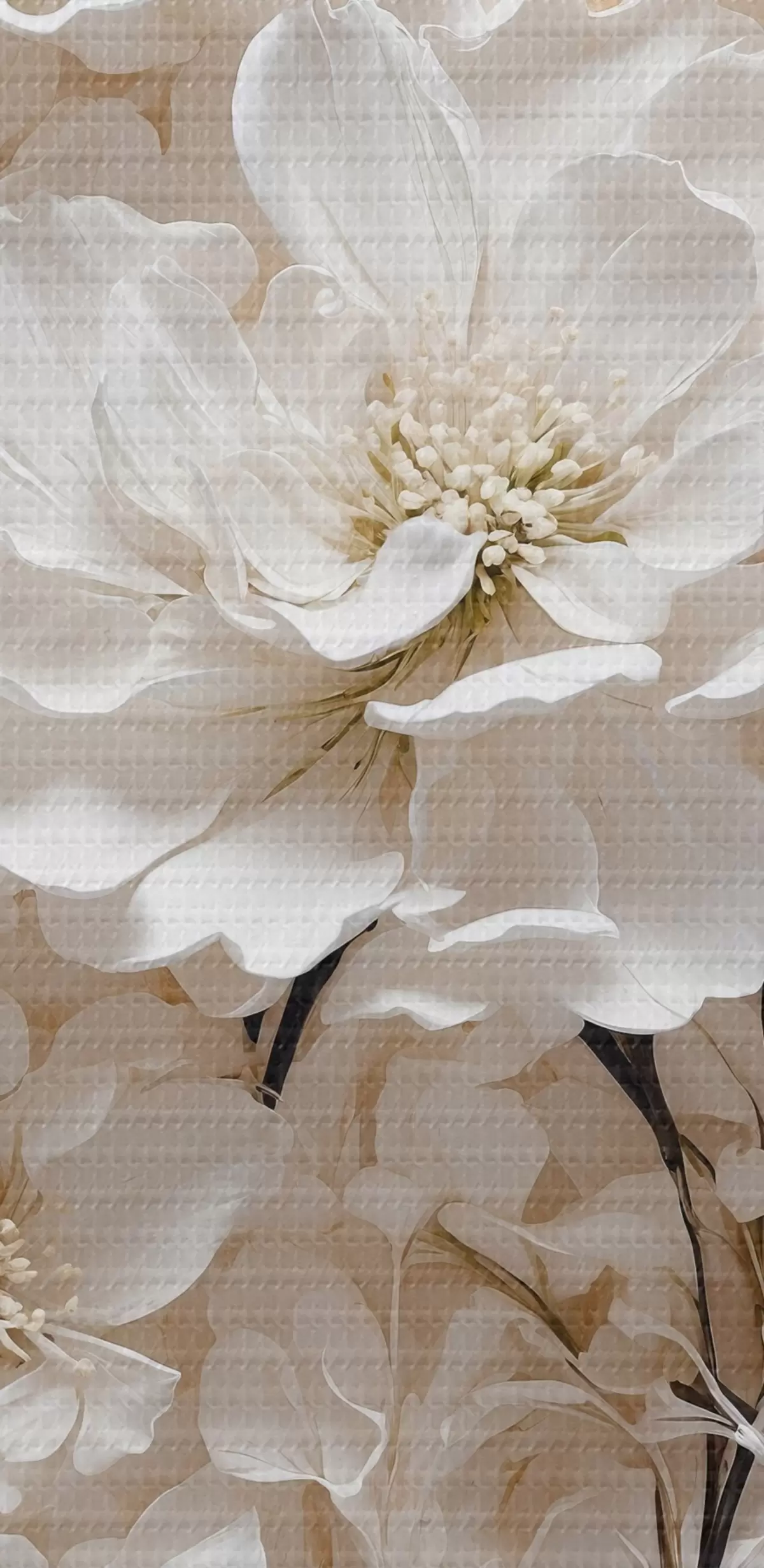 Wandbilder Weiße Blumen auf weiß-orangem Hintergrund s41042