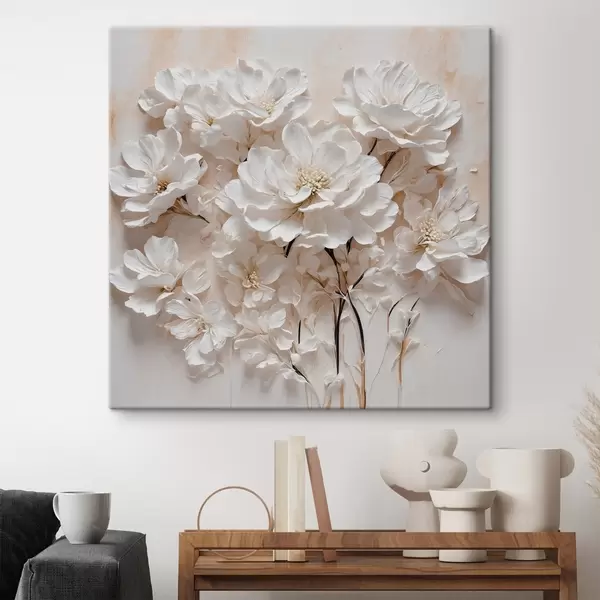 Wandbilder Weiße Blumen auf weiß-orangem Hintergrund Art. s41042
