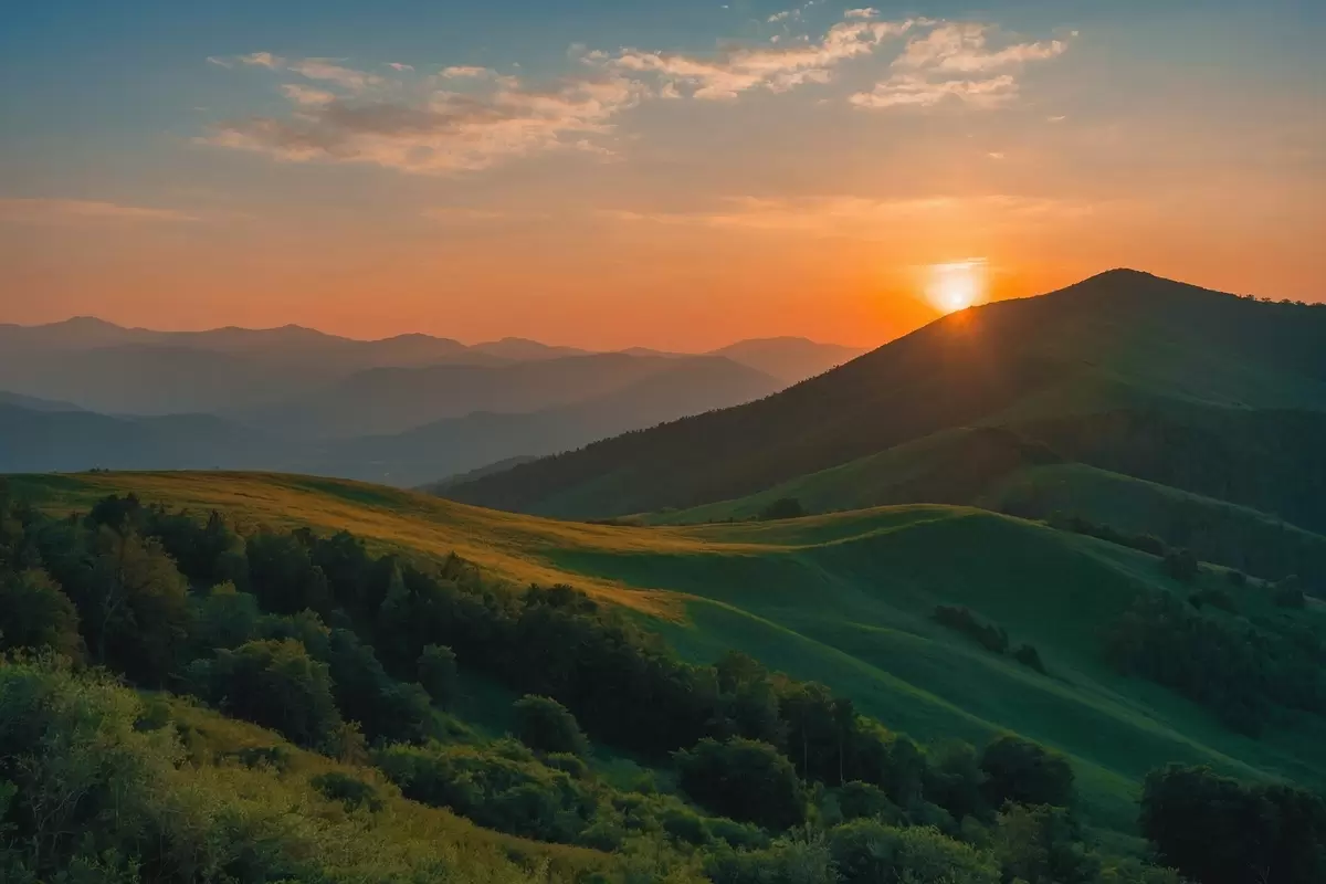 Wandbilder Blick vom Berg bei Sonnenuntergang s41045