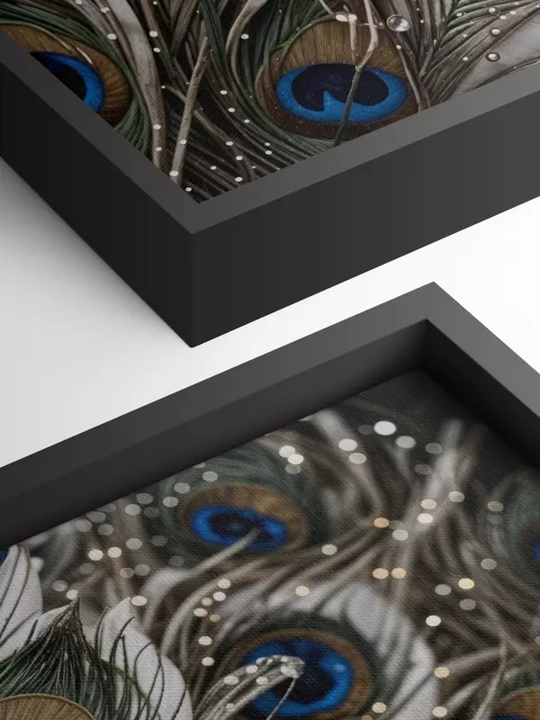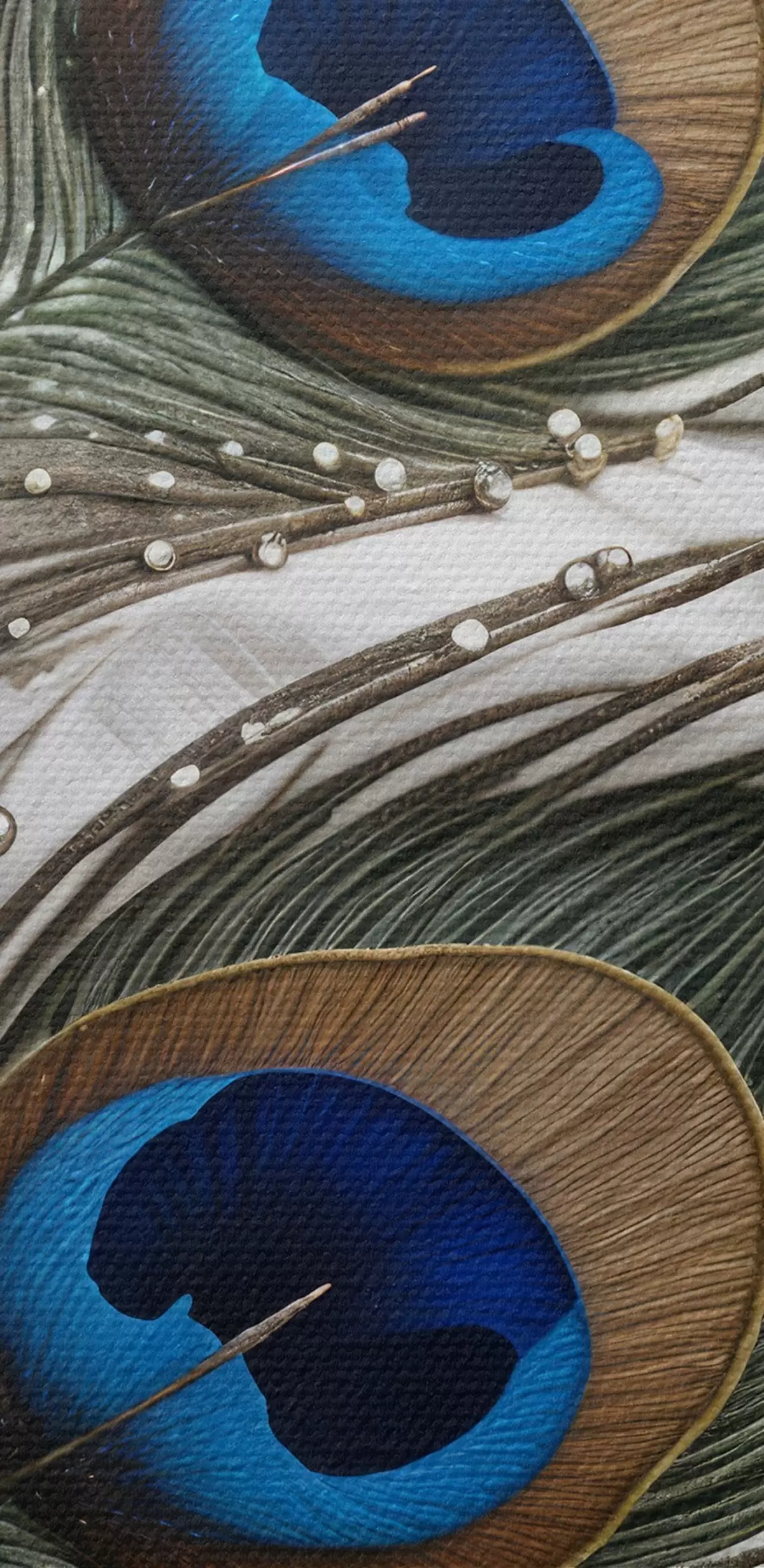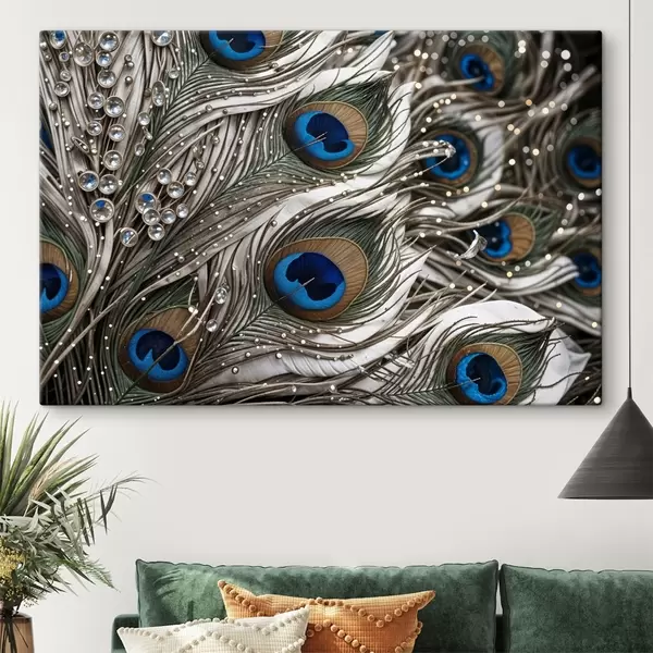 Wandbilder Lebendige Pfauenfedern mit verschlungenen Mustern und auffälligen blauen Mustern Art. s41103