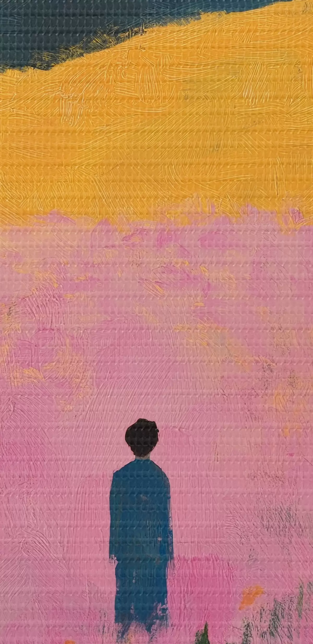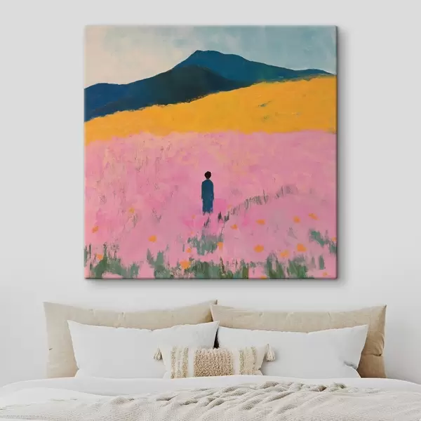 Wandbilder Ein Mann in einem Feld mit rosa Blumen Art. s41164