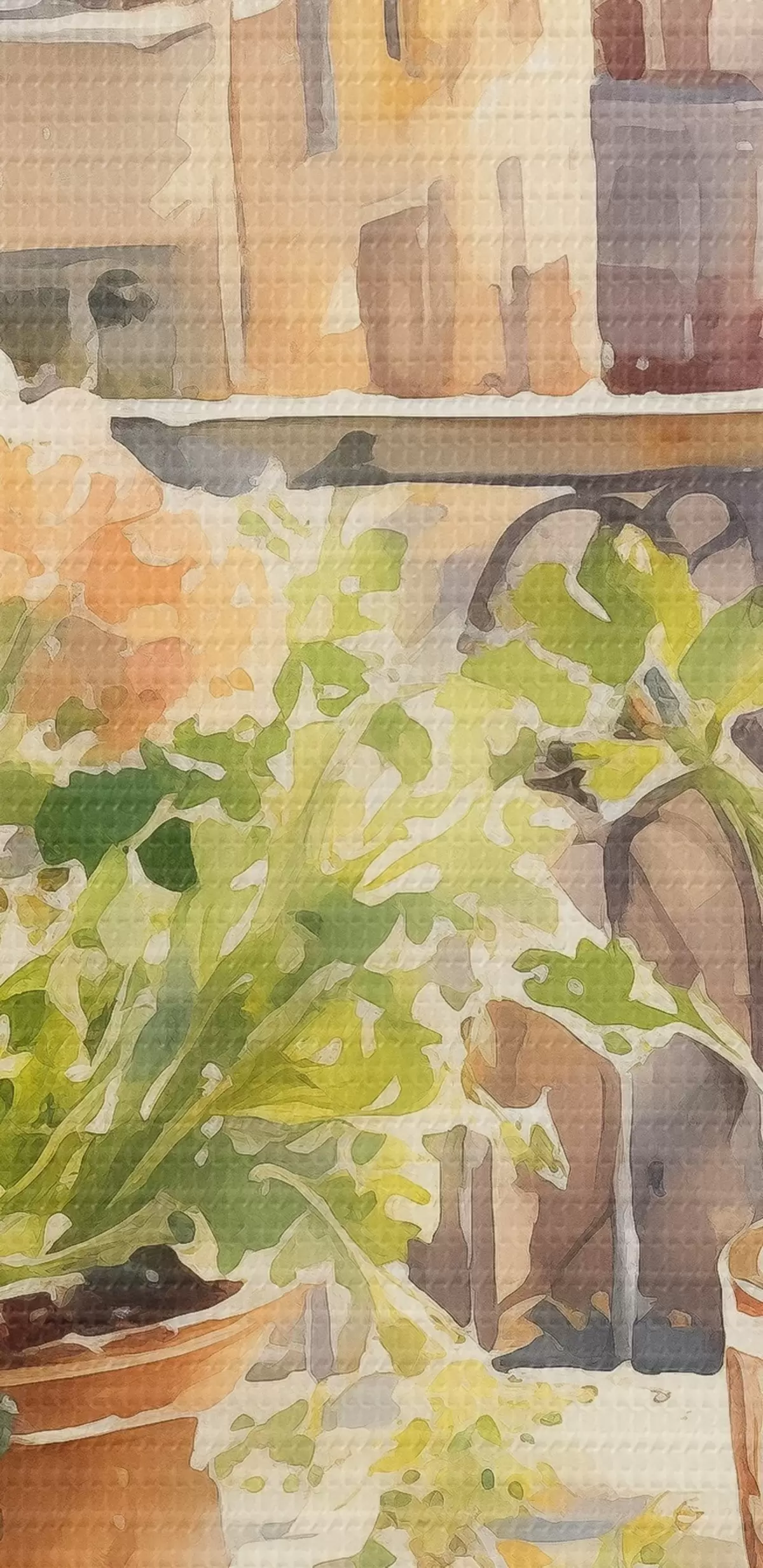 Wandbilder Aquarell Abendessen, Stadtansicht, Blumen, Natur, grüner Salat Art. s41166