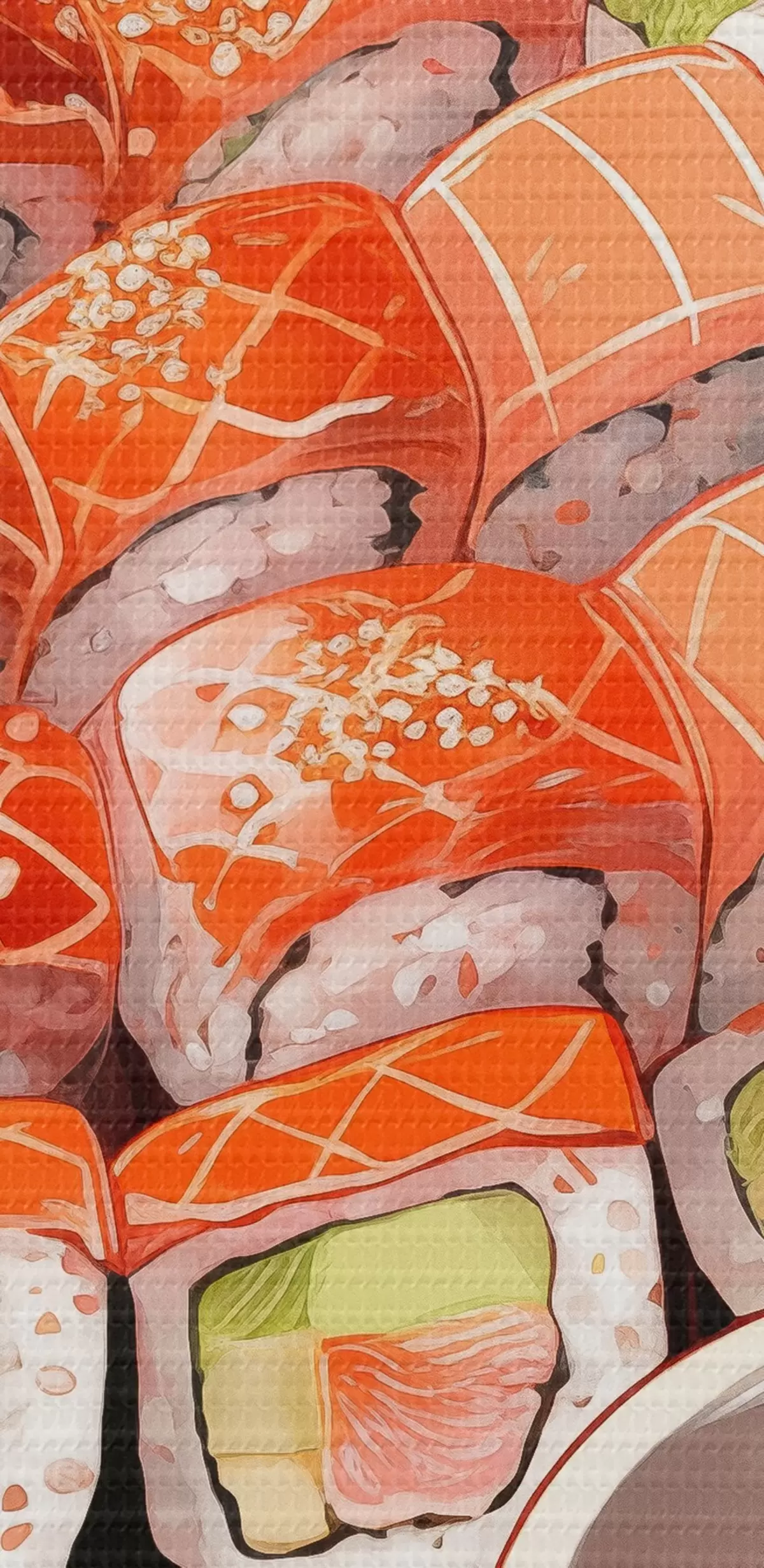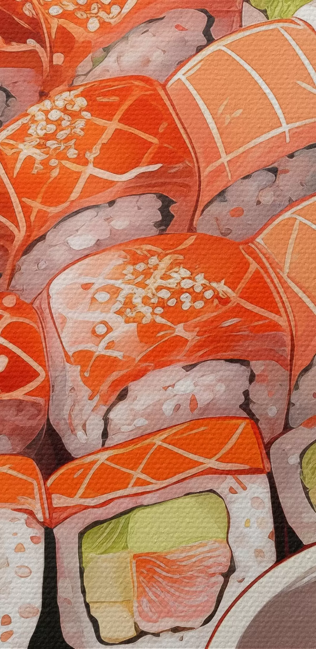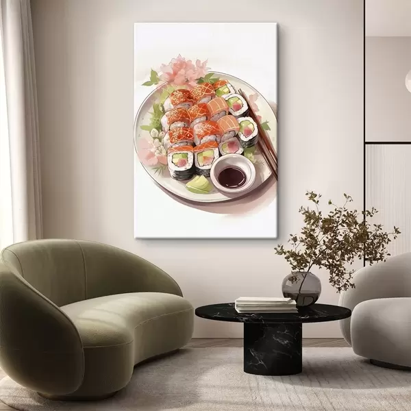 Wandbilder Aquarell Teller mit Sushi, Lachs, lecker s41180