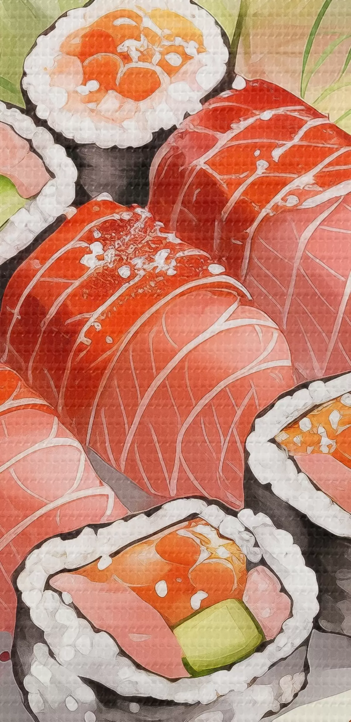 Wandbilder Aquarell Sushi, blumig, japanisch Art. s41181
