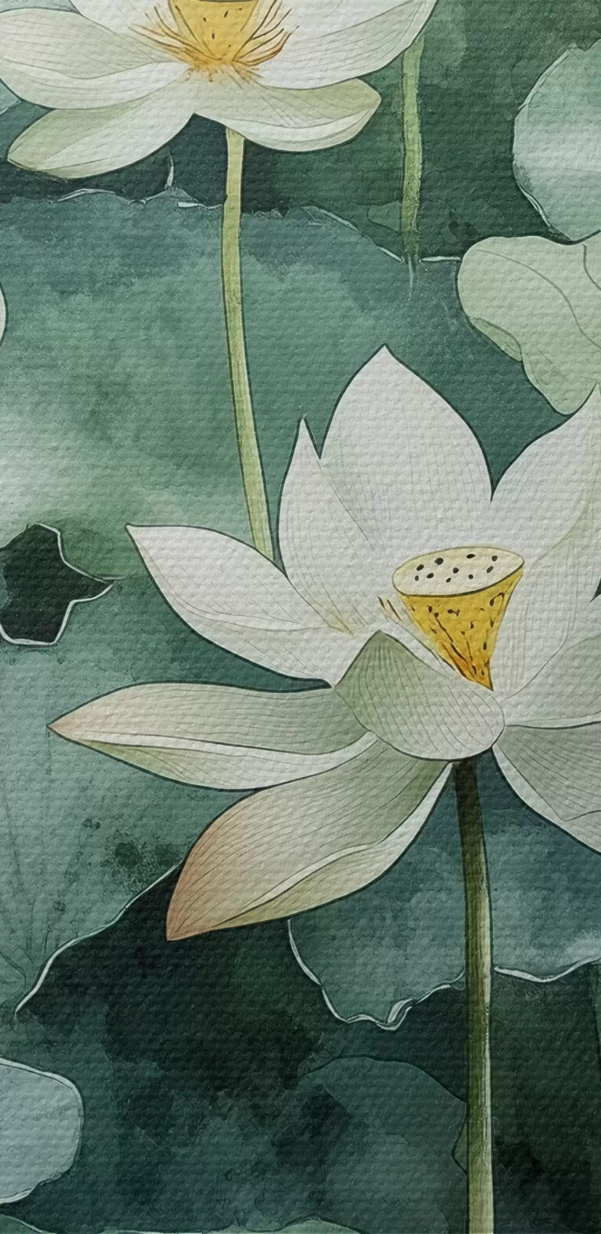 Wandbilder Lotosblumen im Teich, Aquarell, Grünzeug s41228