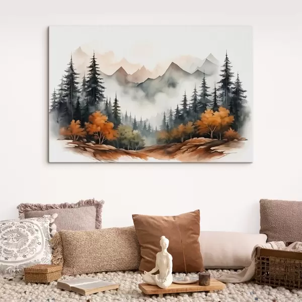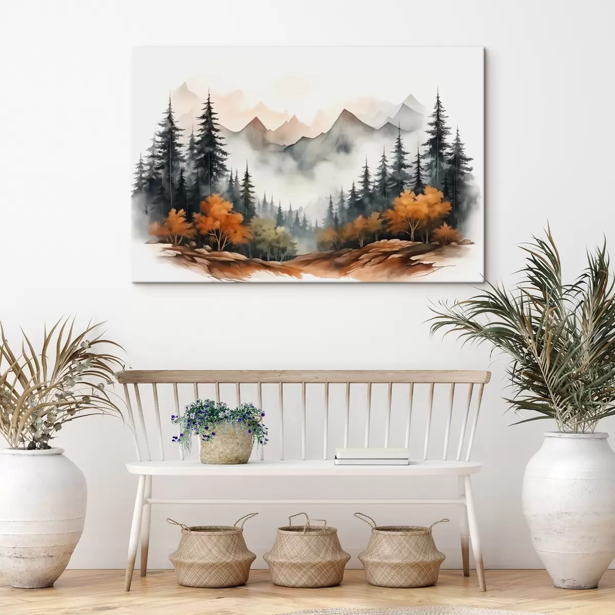 Wandbilder Wald auf dem Hintergrund der Berge Aquarell Art. s41240