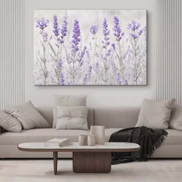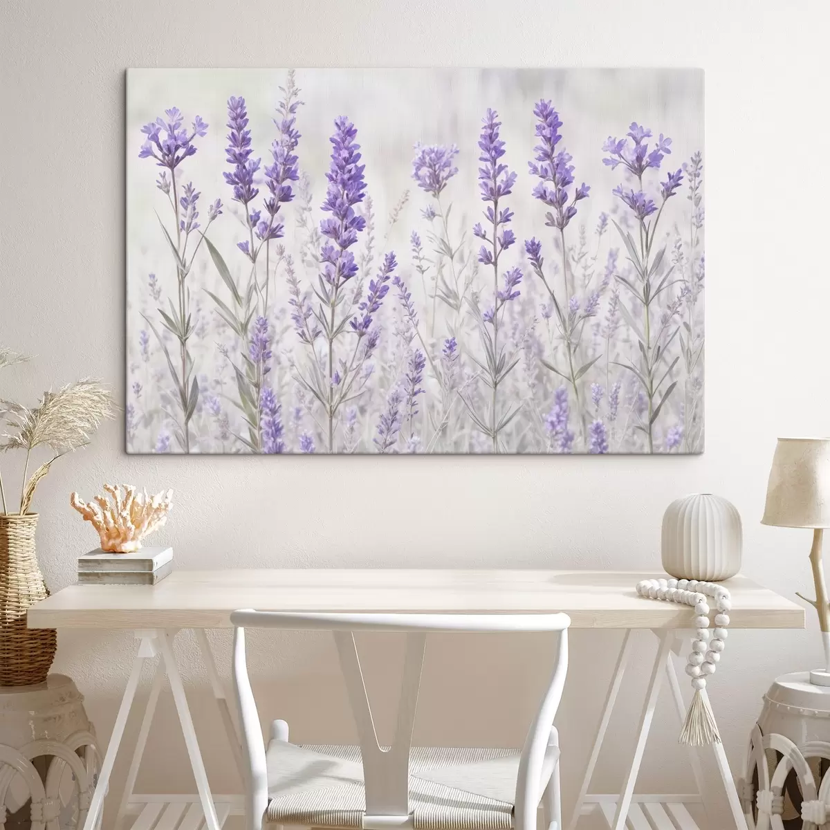 Wandbilder Ein Feld mit lila Lavendelblüten vor einem unscharfen, strukturierten Hintergrund Art. s41265