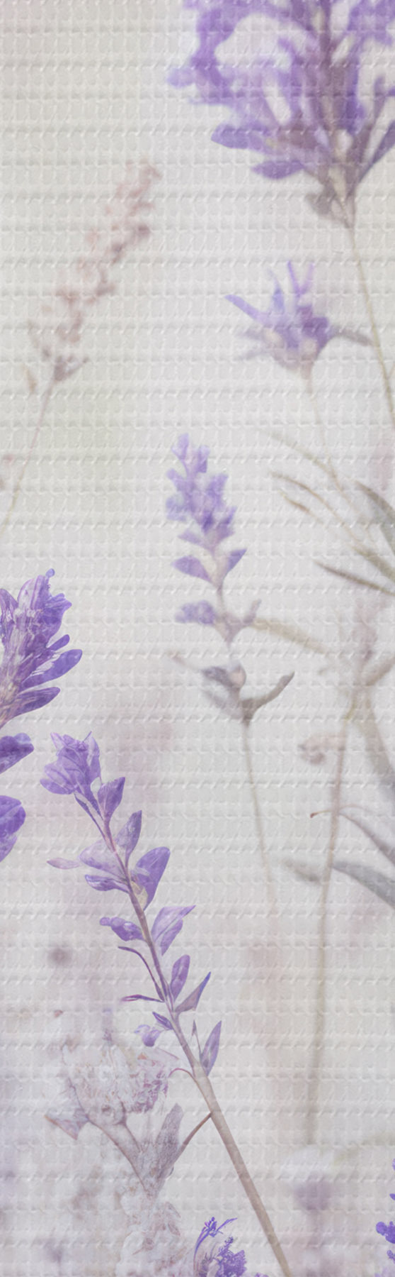 Wandbilder Ein Feld mit lila Lavendelblüten vor einem unscharfen, strukturierten Hintergrund s41265