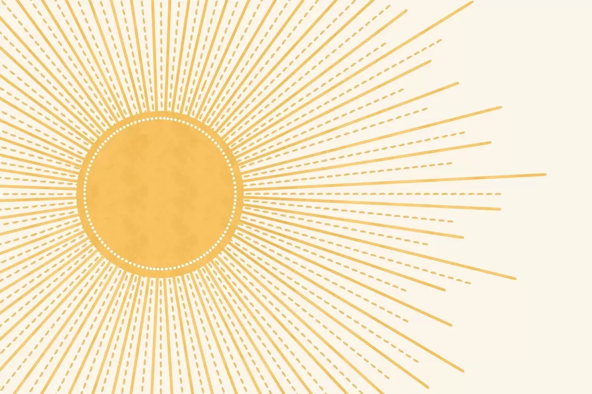 Wandbilder Eine leuchtend gelbe Sonne mit strahlenden Sonnenstrahlen vor einem hellen Hintergrund, der eine warme und sonnige Atmosphäre schafft s41268