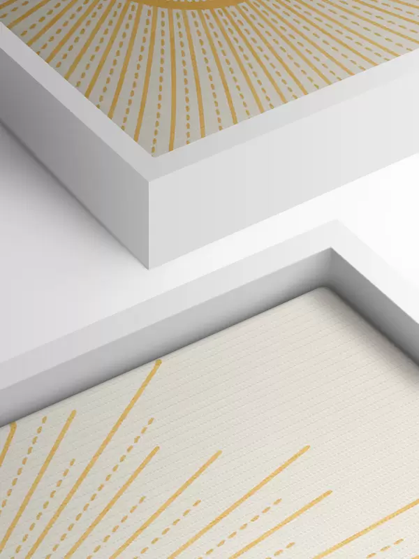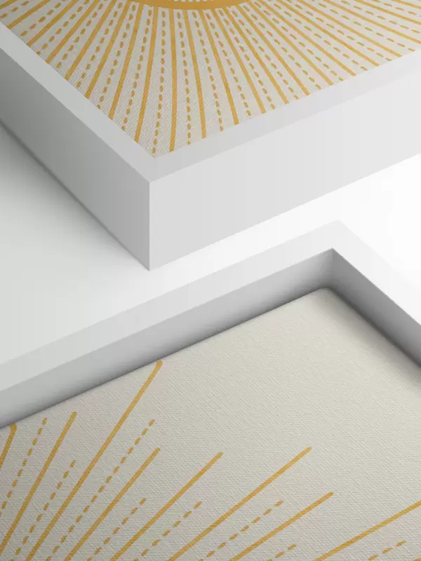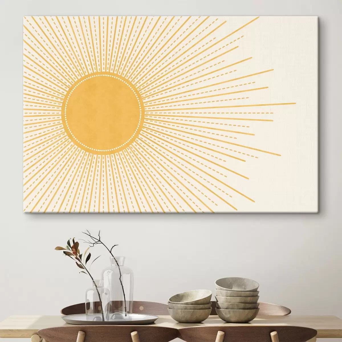 Wandbilder Eine leuchtend gelbe Sonne mit strahlenden Sonnenstrahlen vor einem hellen Hintergrund, der eine warme und sonnige Atmosphäre schafft Art. s41268