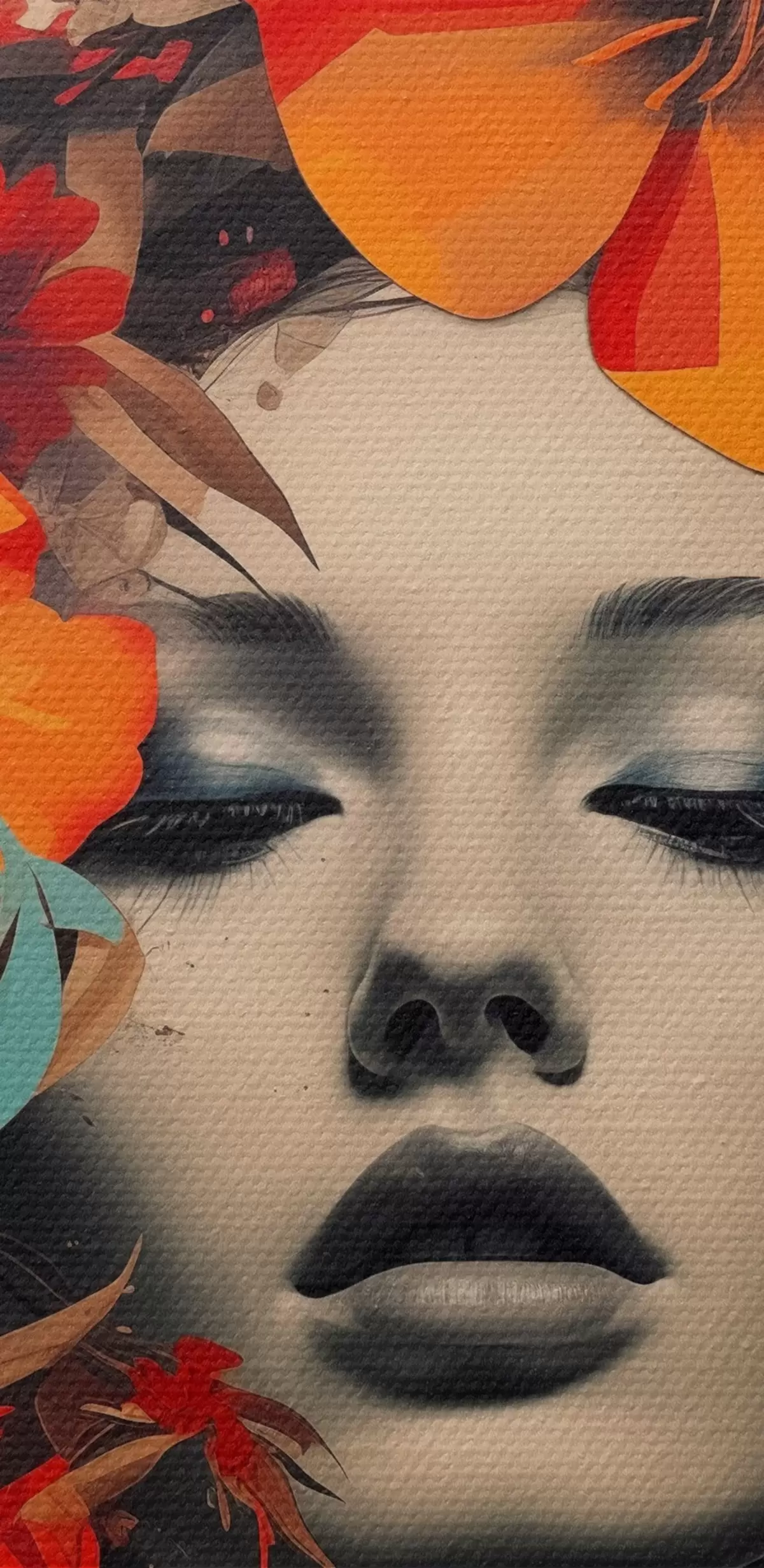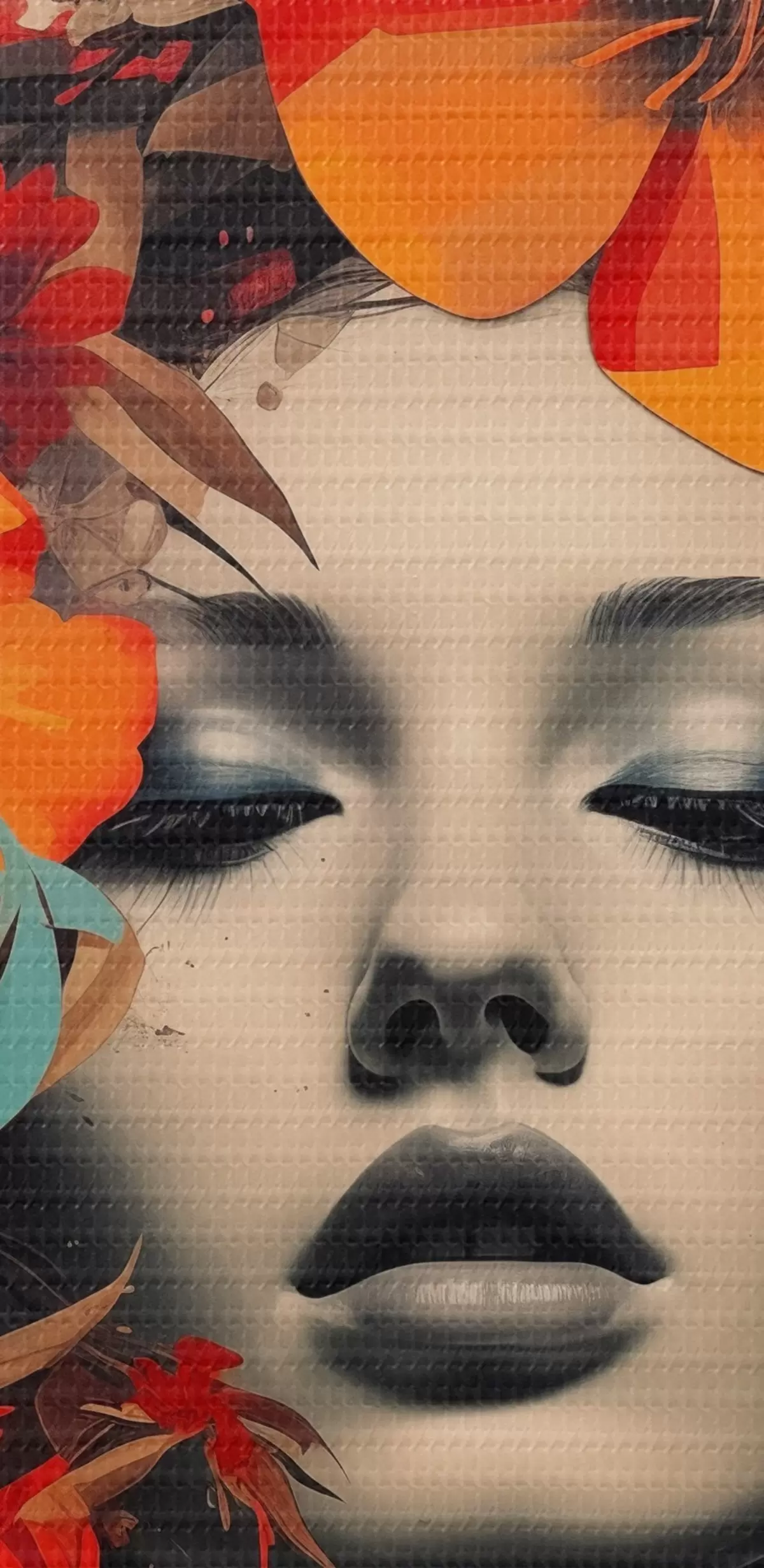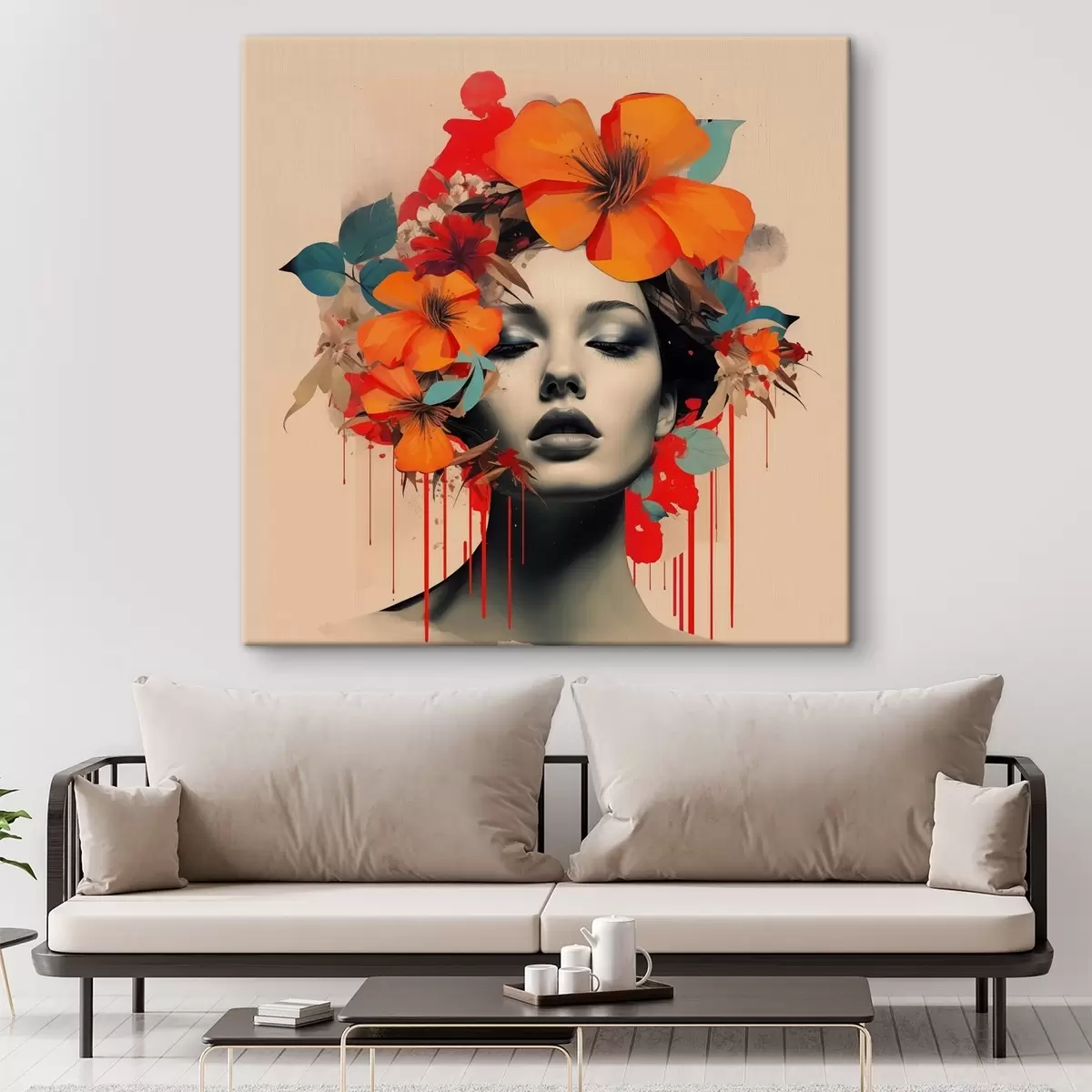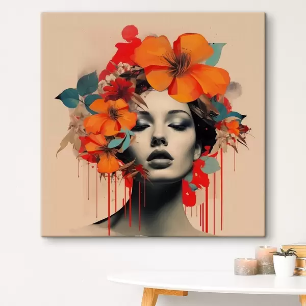 Wandbilder Porträt eines Mädchens im Collage-Stil mit Blumen s41271