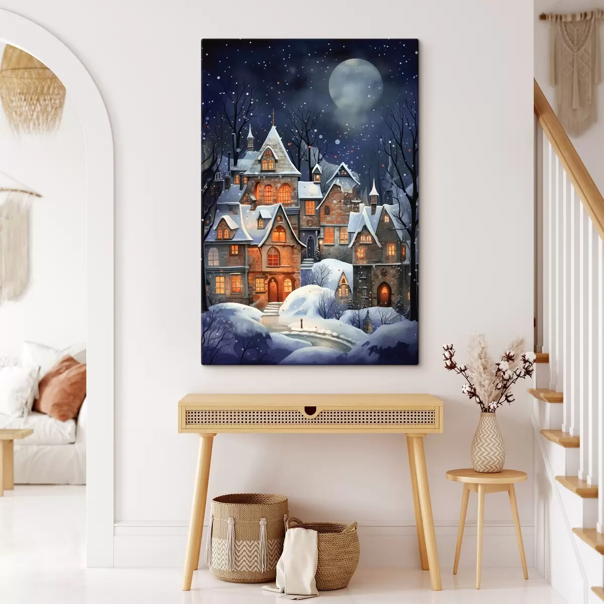 Wandbilder Häuser im Schnee vor der Kulisse des nächtlichen Sternenhimmels Art. s41276