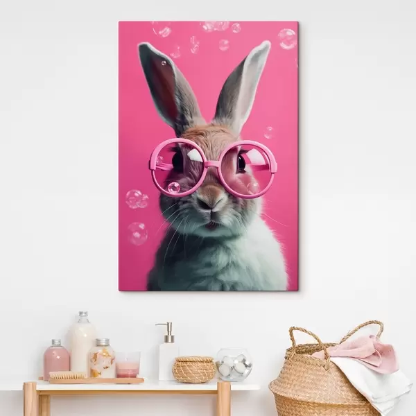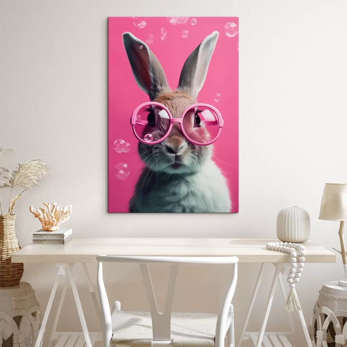 Wandbilder Kaninchen mit rosa Brille auf einem rosa Hintergrund Art. s41280