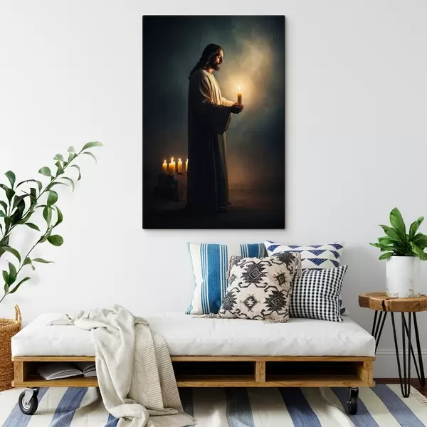 Wandbilder Jesus Christus mit Kerze in der Dunkelheit Art. s41315