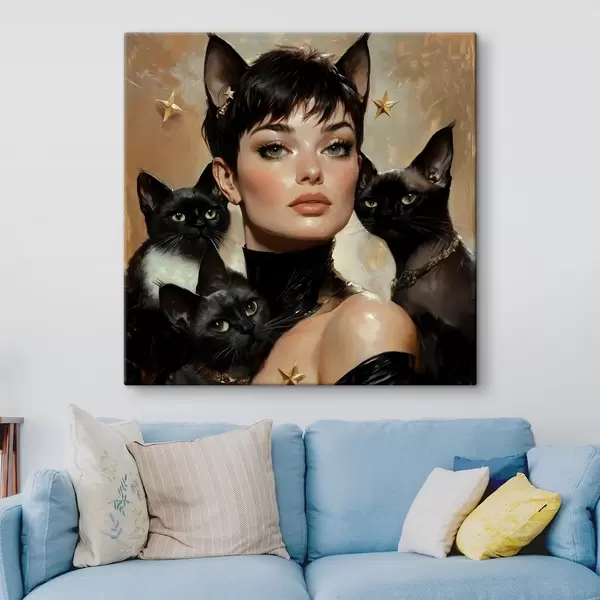 Wandbilder Katzenmädchen mit schwarzen Katzen s41344