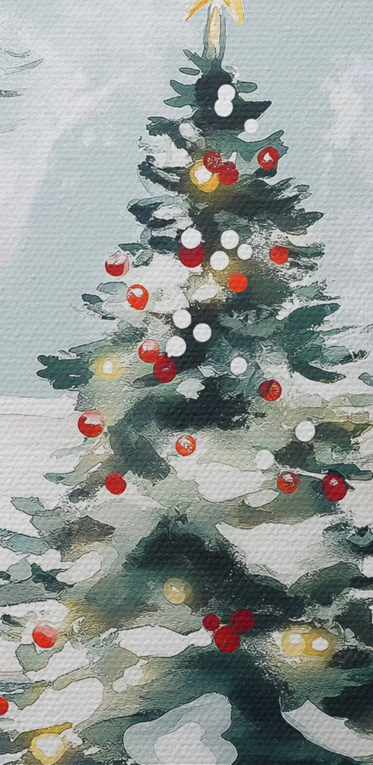 Wandbilder Winterstadt, geschmückter Tannenbaum, Weihnachten, Aquarell Art. s41364