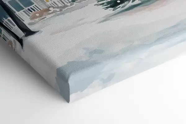 Wandbilder Winterstadt, geschmückter Tannenbaum, Weihnachten, Aquarell Art. s41364