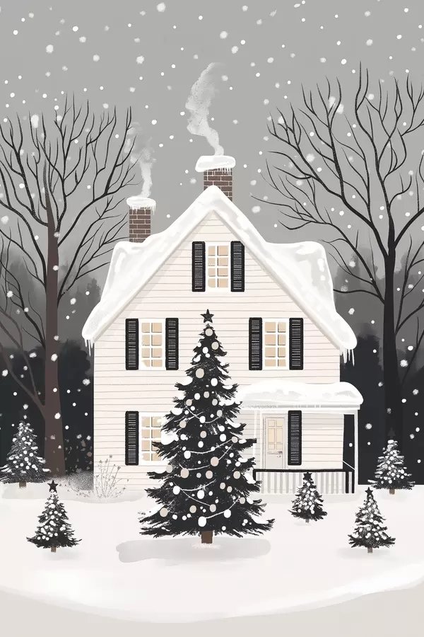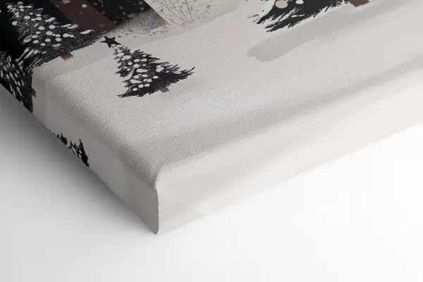 Wandbilder Winterstadt, geschmückter Tannenbaum, Weihnachten, Wald, schönes Haus s41371